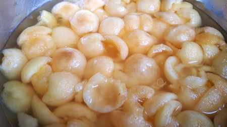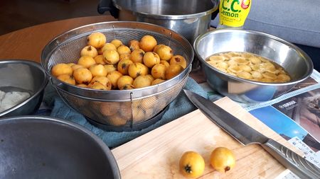 灰汁のせいなのか何なのか、ビワはすぐ黒ずんできてしまうので、