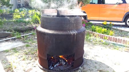 友人のうちには、デッカイ釜とドラム缶を細工したカマドがあり、これで一気に茹で上げる。