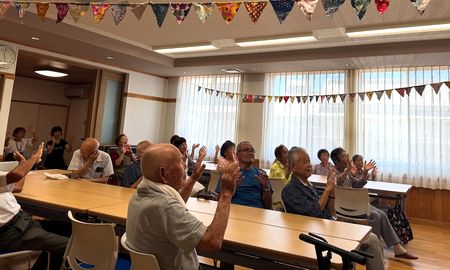 今回の場所は、80歳くらいからの集まりをシニアクラブと呼んでいるとのこと。僕らは69歳だから、10歳以上年配の方々に歌を聞いてもらうことになる。